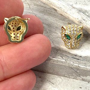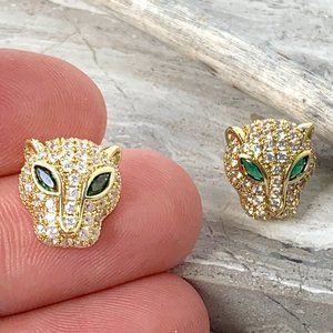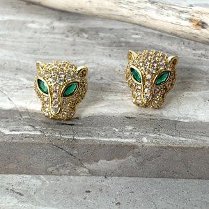 Anthro style, boho style, Trendy, Brand New Anthropologie jewelry, Everyday hoop Earrings, Gold studs, crystal, small post earrings, tiger, jaguar, animal, lion, wild cat, panther, emerald stone, gold and diamond studded