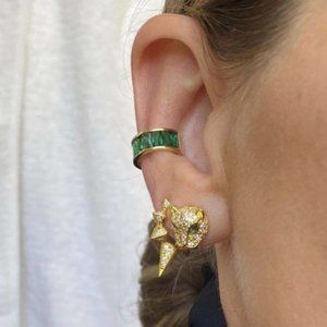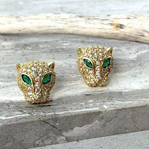 NEW~ Anthropologie Pave Crystal Emerald Eye Jaguar Stud Earrings