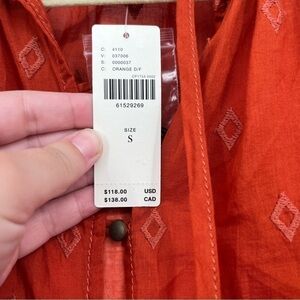 NEW Anthropologie Pilcro Burnt Orange Embroidered Blouse Cover Up Size Small
