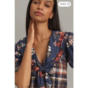 🎤 From Anthro: Wrap up your look: THIS is the bowment, featuring a front bow detail, double-layer collar, and puff short sleeves. This only-at-Anthro collection is defined by crisp cuts, look-twice details, and playful polish. Here, there, and everywhere, Maeve makes your look.
