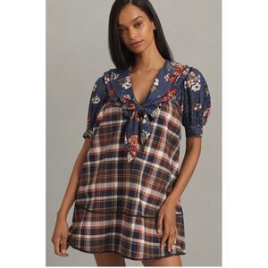NEW Anthropologie Pilcro Short-Sleeve Bow-Front Puff-Sleeve Tunic Dress Medium