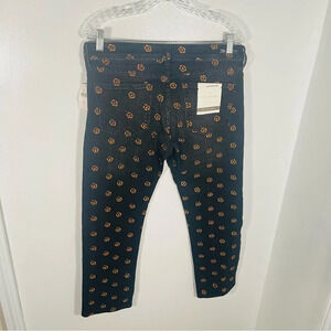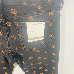 NEW Anthropologie Pilcro Slim Straight Gold Rose Embroidered Jeans Bohemian