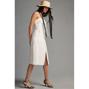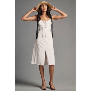 NEW Anthropologie Pilcro Slim White Denim Sweetheart Corset Midi Dress Large