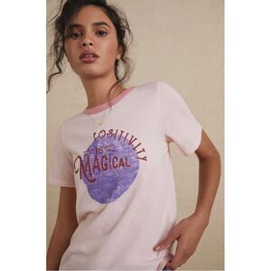 NEW Anthropologie Positivity Is Magical Graphic Ringer Tee Shirt Top Small