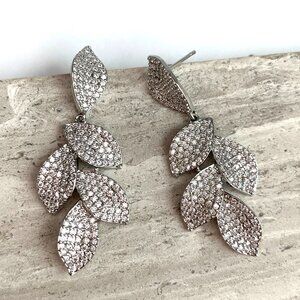 Elegant and classy, a leaf motif features intricately set pavé stone detail that is absolutely stunning! A single leaf adorns the ear lobe as the leaf cluster dangles below. These have a swinging motion that really sparkles in direct light.