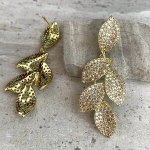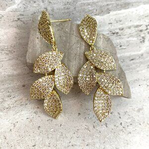 NEW~ Anthropologie SHASHI Gold Pavé Crystal Leaf Dangle Earrings
