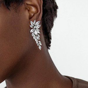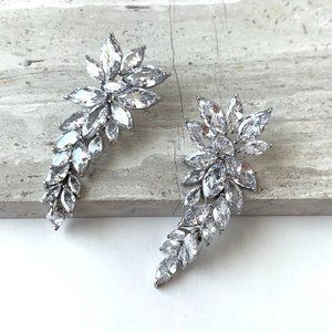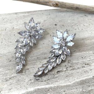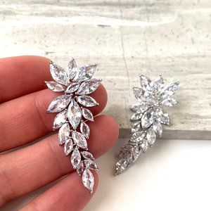 Approx. 2"L, 1"W. Silver plated, Cubic Zirconia, post backs included. NWOT