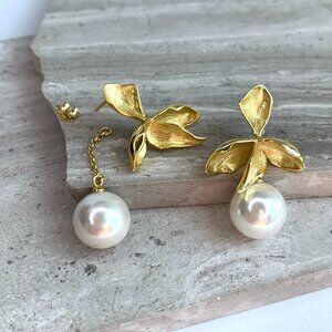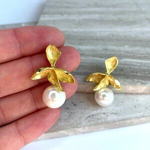 Approx. 1-3/8"L, 7/8"W. 14k gold-plated brass, simulated drop pearl, post backs included. NWOT