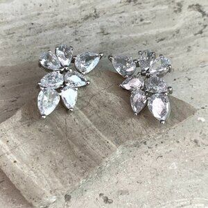 Approx. 7/8"L, 5/8"W. Silver plated, glass crystal, post backs included. NWOT