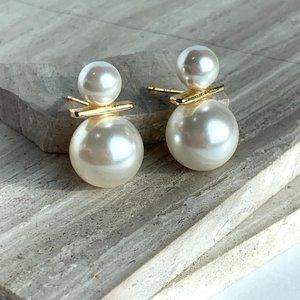 NEW ~ Anthropologie Shashi "Sydney" Double Stacked Pearl Earrings