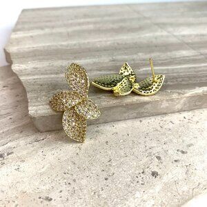 Approx. 1-1/4"L, 3/4"W. Gold plated, Cubic Zirconia, post backs included. NWOT