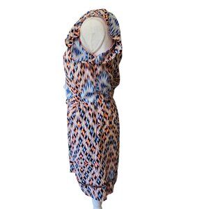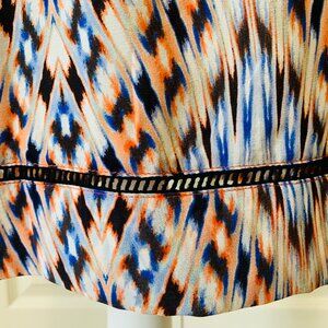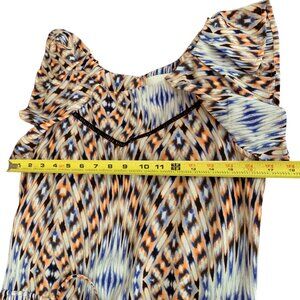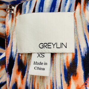 NEW Anthropologie Greylin Silk Dress Cocktail Short Sleeve Geometric Multi Blue Orange White Black Women’s Size Extra Small