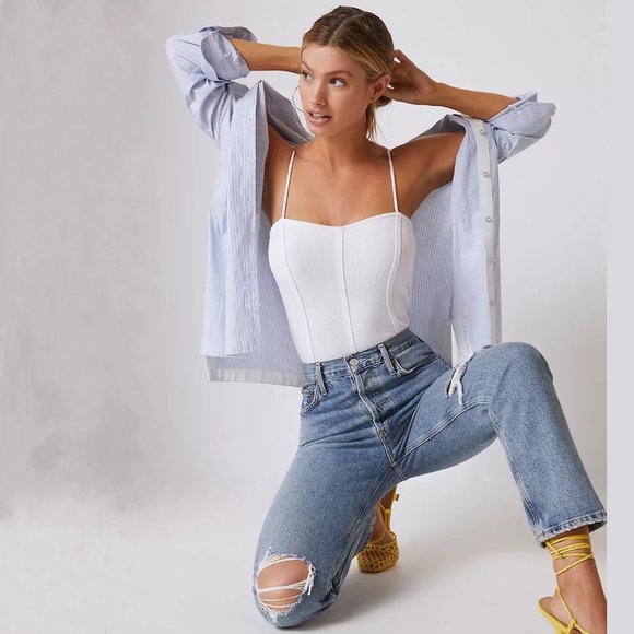 NEW Anthropologie Size Large, Corseted Cropped Cami - White