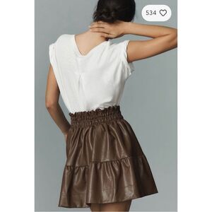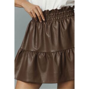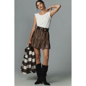 NEW Anthropologie Somerset Caffiene Vegan Faux Leather Ruffled Tiered Mini Skirt