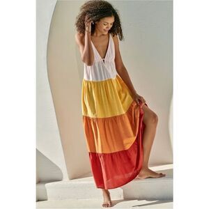 🎤 From Anthro: The Raya Colorblock Maxi Dress is a symphony of summery hues in cool, cotton tiers. With adjustable straps and a tie-back detail, you'll perfect your fit and look stunning. The Fit: Made for the breeze: think easy tiers & a deep-v neckline.