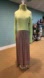 - Color: neutral, bright neon yellow/green top with tan, taupe bottom