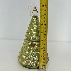 NEW Anthropologie Tree Gold Glass Candle “A” Monogram Balsam Cedarwood 8”