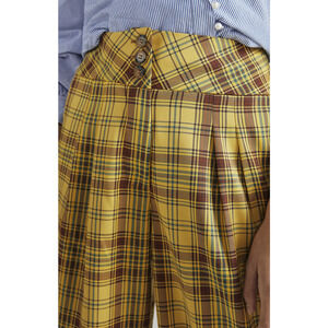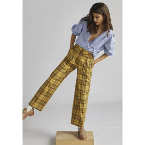 NEW Anthropologie Yellow Wide-Leg Plaid Pants - Size Medium