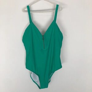 NEW Anthropologie x Mynah Green One Piece Zip Front Swimsuit Size 18W