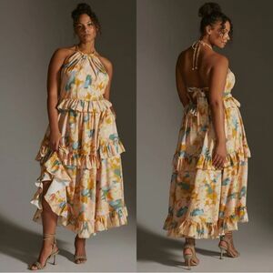 NEW Anthropologie Geisha Designs Ruffled Tiered Floral Maxi Dress