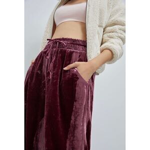 NEW Anthropologie Gloria Belted Smocked Velvet Jogger Lounge Pant X-Small Petite