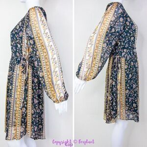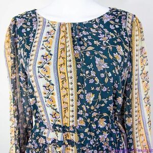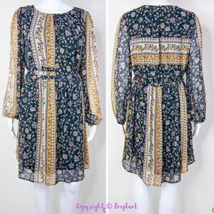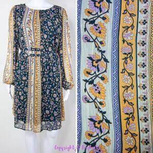 anthropologie Lost + Wander floral print boho long sleeve tie waist dress, M