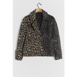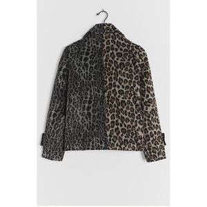 NEW Anthropologie Vigoss Leopard Contrast Open Front Coat Collar Jacket X-Small