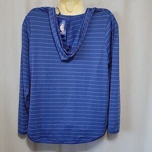 This is a Contour Pullover hoodie in Dark Royal Blue with stripes. "Pistons" embroidered on the lower corner/front. No other mention of Pistons, so it really could be worn every day!
