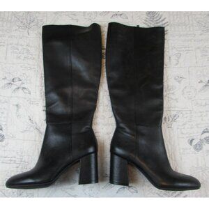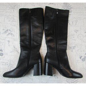 NEW Antonio Melani black high boots Block heel zip Leather Black Women SZ 9 M
