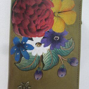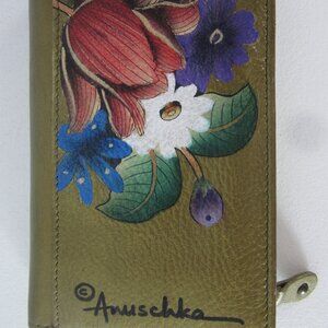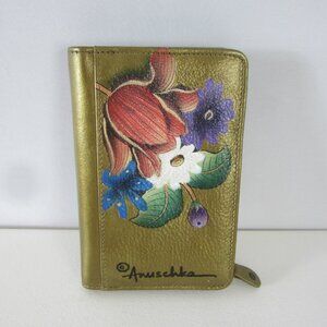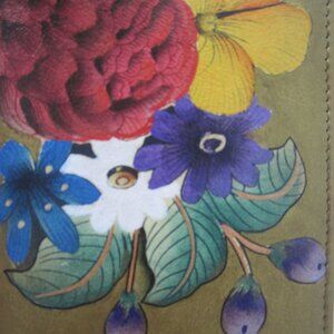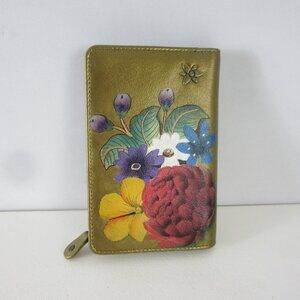 NEW Anuschka Hand Painted Floral Bi-Fold Leather Gold Red Blue Yellow Zip Around