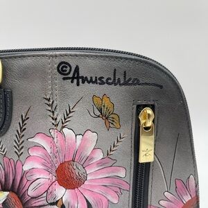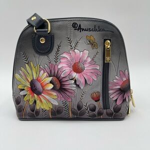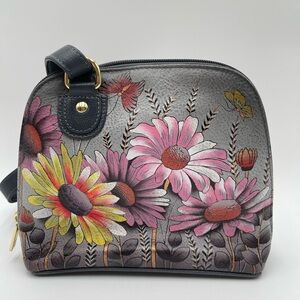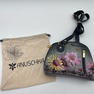 NEW Anuschka Small leather Multi Compartment dome Zip around mini Crossbody. Hand Painted floral “Wild Meadow”. Adjustable strap. Comes with dust bag. Item is new without tags. Unused. No flaws to note. Smoke free, pet friendly home. Colors may vary based on lighting.
