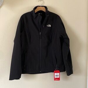 Windproof with plenty of stretch, this iconic heavyweight soft shell offers the ultimate in weather protection. The coveted Apex Barrier Soft Shell stops rain and wind to keep you warm and dry. A brushed fleece interior ensures all-day comfort. 351 g/m2 WindWall-96/4 recycled post-consumer polyester/elastane soft shell with durable water-repellent (DWR) finish (solid). 374 g/m2 WindWall-100% recycled post-consumer polyester with durable water-repellent (DWR) finish (heather).100% windproof fabric with DWR finish. Reverse-coil center front zipper. Left chest zip pocket. Secure-zip hand pockets. Hem cinch-cord. Contrast, raised, high-definition The North Face logos at left chest and right back shoulder.