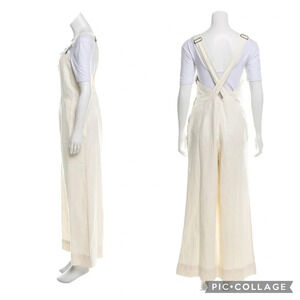 NEW Apiece Apart Caterina Overalls Cream Wide Leg Apron Jumper 8 Cotton Linen