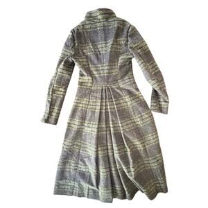 NEW Aporia.AS Wool Blend Plaid Brown Green Long Winter Coat XS leather trim
