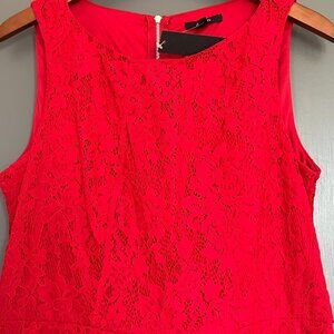 New with tags (NWT) Apt. 9 sleeveless lace fit and flare dress in Tango Red in women's size 12. This lovely dress features a lace overlay over an inner lining. It zips in the back. This would be great for parties, weddings, graduations, etc.