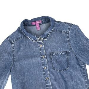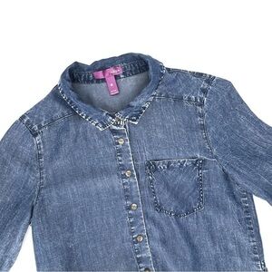 [Keywords: extra large x-large xlarge denim indigo button up jean chambray back to school ]