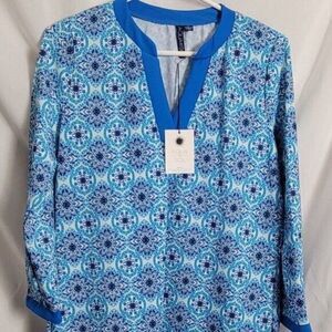 Aqua et Sol, women's Small Swim dress/shirt, sun shirt/dress/tunic...super pretty blue colors, V-neck, long sleeves. Ready for your day in the sun!! No pockets, but it does have the slits in the arm and hem.