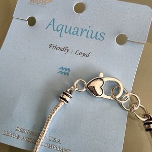 Beautiful snake chain bracelet adorn with Aquarius zodiac constellation beads and charms. Aqua blue stones, star beads and a lobster clasp closure with a heart detail.