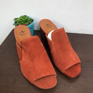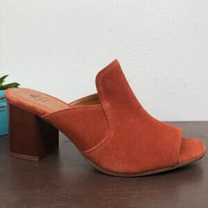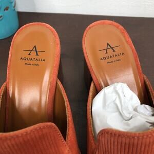NEW Aquatalia Elaina Corduroy Suede Open Toe Slip On Mules in Rust Women's Sz 8