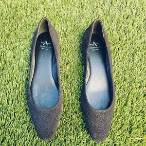 NEW Aquatalia Marcella glitter leather ballet flats Grey sculpted heel Italy