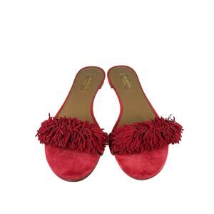 NEW Aquazzura Wild Thing Red Suede Fringe Slide Flats EU 37.5