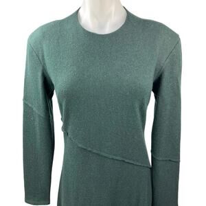 NEW Argent Blue Green Wool Round Neck Long Sleeve Midi A-Line Sweater Dress 4