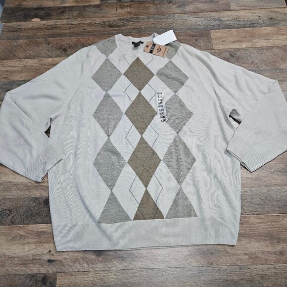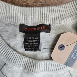 NEW Argyle Sweater Mens Grandpacore Vanilla Neutral Knit XXL by Dockers Preppy