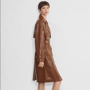 NEW Aritzia Babaton New Tabloid Vegan Leather Trench Coat in Cognac Brown