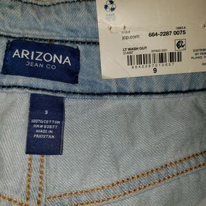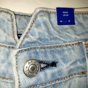 NEW!! Arizona Junior SIZE 9 Mom Jeans Blue Light Wash Denim High Waist Taper Leg