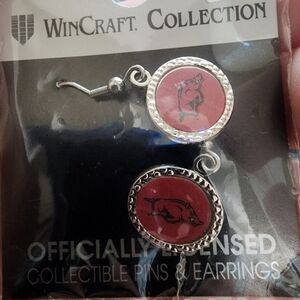 NEW Arkansa Razorbacks bundle....A pair of earrings and one shot glass.