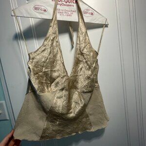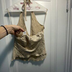 NEW Armani Exchange Silk Gold Halter Top Women's Large Fawn metallic tank NWT