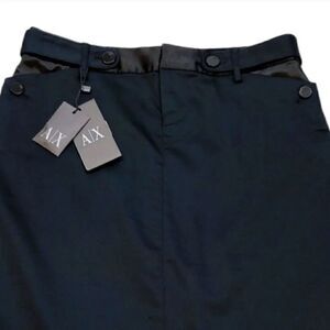 NEW Armani Exchange Tuxedo Satin Detail A-line Skirt in Black Size 0