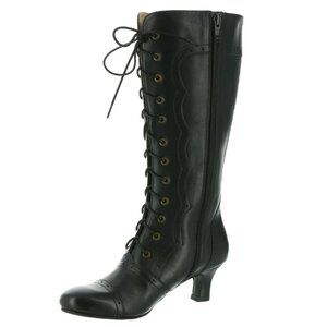 NEW Array Masseys "Vintage" Leather Tall Lace Up Knee-High Boots in Black Sz. 7W
