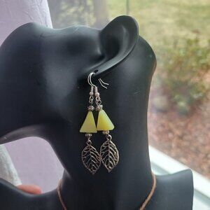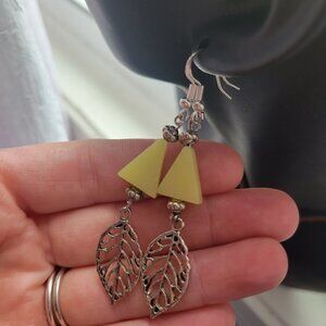 NEW Artisan Handmade Green-Lime Triangle And Silver Leaf Accents Earrings
